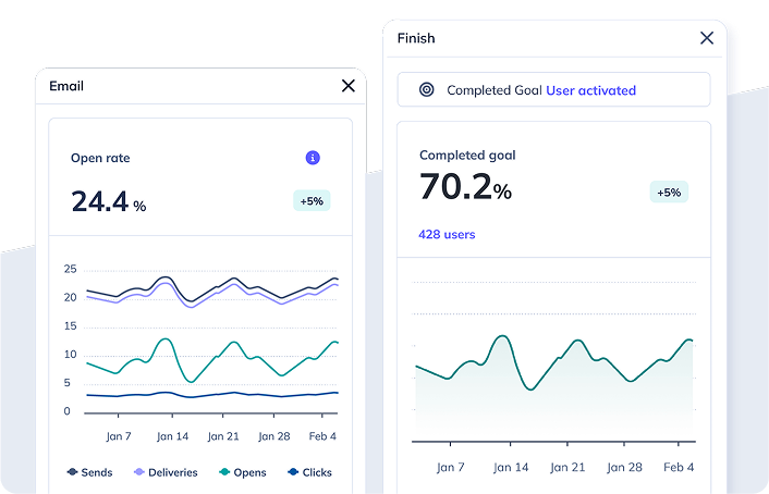 Guide users from signup to ‘aha’ with branded experiences—everything from guides and checklists to resource centers and surveys.