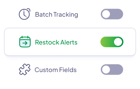 Track inventory live, manage warehouses, and receive smart restock alerts.